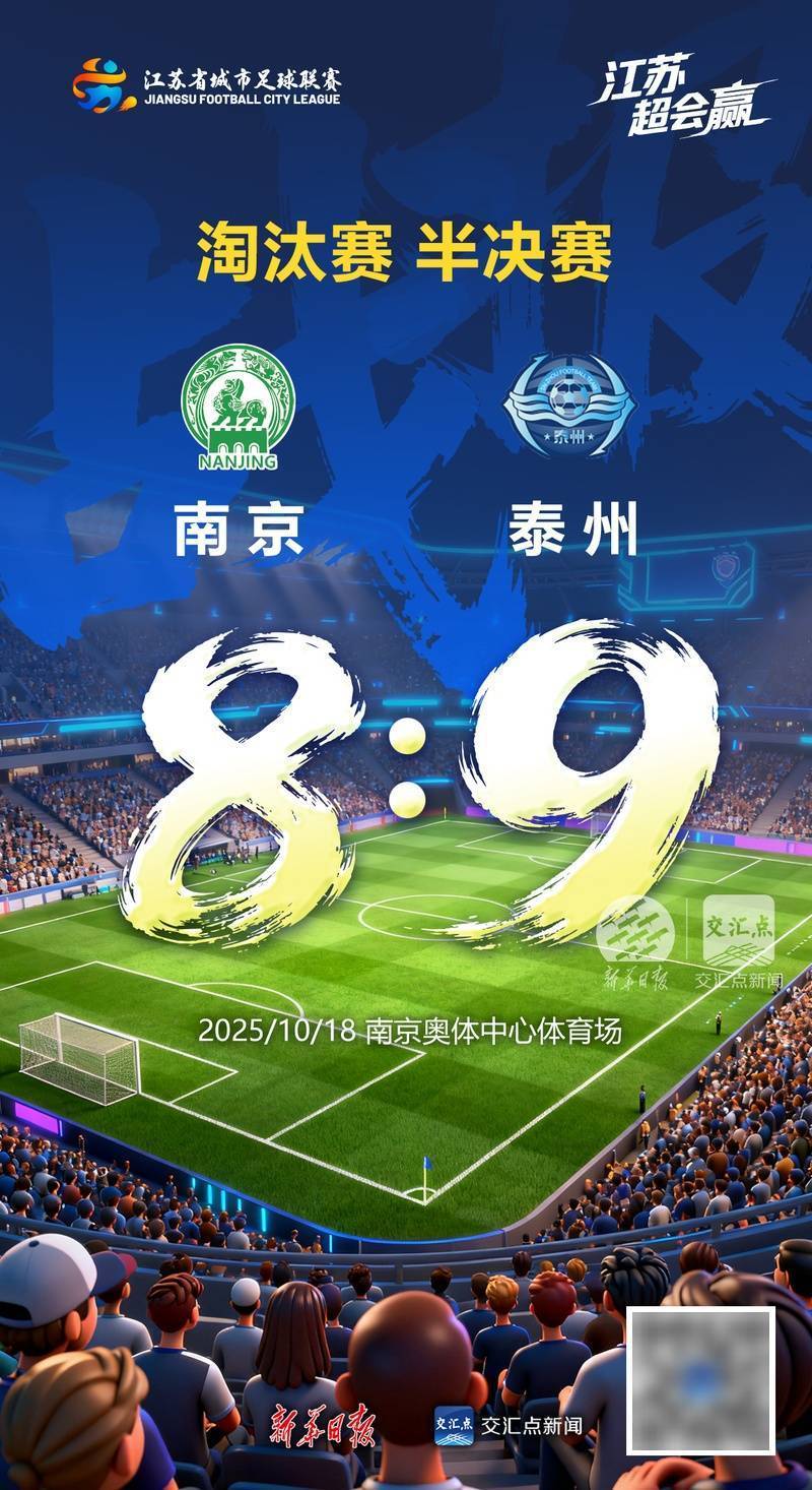 9∶8!泰州队“点球大战”战胜南京队,晋级“苏超”决赛10月18日晚,南京奥体中心迎来“苏超”联赛半决赛关键战,泰州队客场9∶8战胜南京队,成功晋级首届江苏省城市足球联赛的决赛。(交汇点新闻)