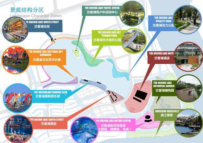 如今兰香湖的风景日趋成熟,湖岸风景线与建筑风景线相互映衬,水景、江景、楼景、桥景彼此交融,都市与生态之美于此交相辉映。