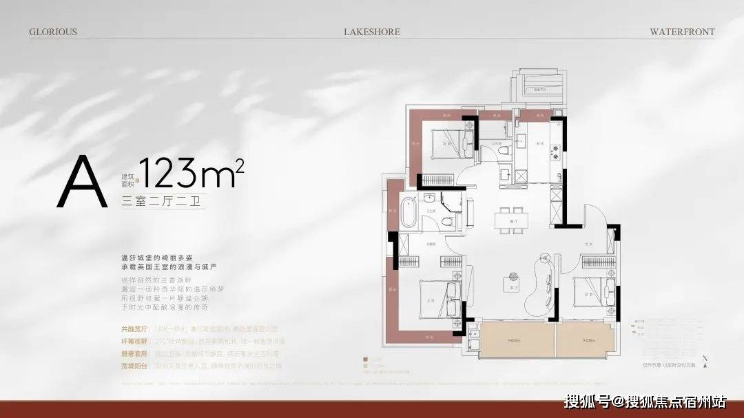 SLDK一体化,餐厅两侧均预留餐边柜位置,全卧及厨房均附赠飘窗,同时,项目拥有超大窗墙比,室内景观视野非常突出。由于项目南面住宅仅4层高,因此,象屿天誉蘭香3-4F南向就可以纵享兰香湖美景: