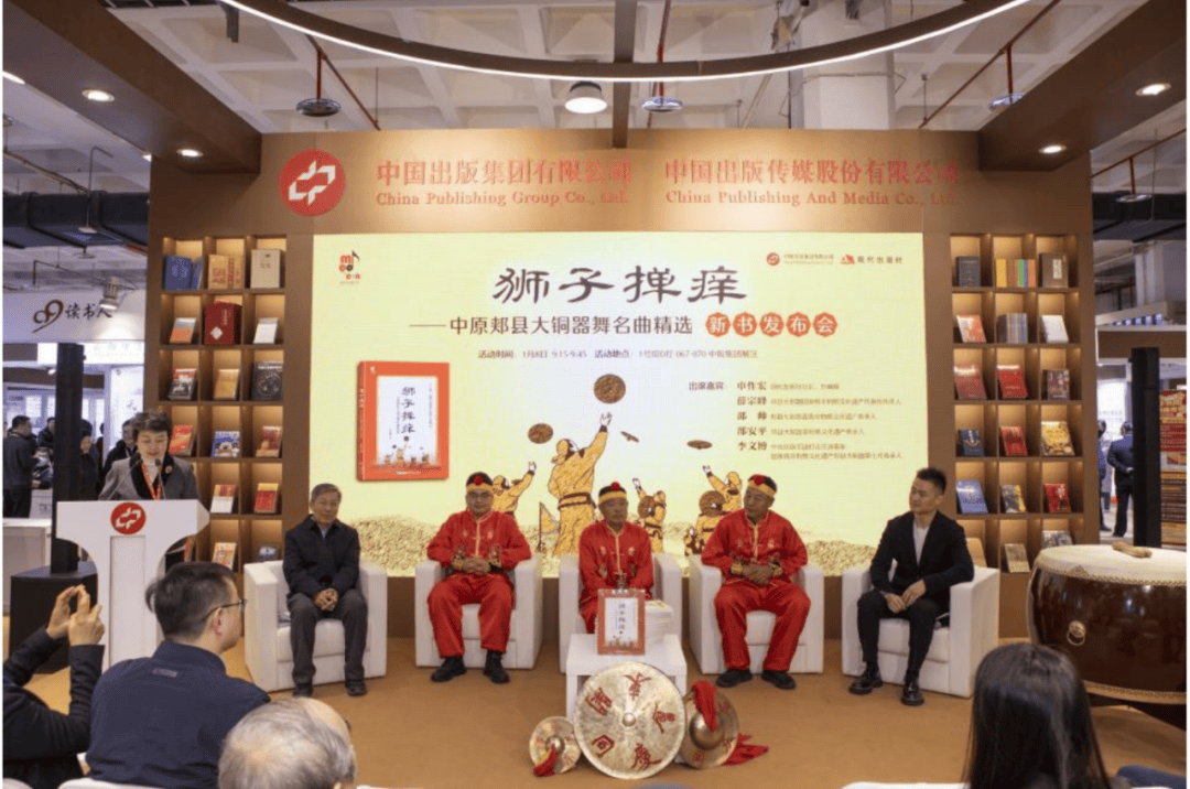 1月8日,国家级非物质文化遗产郏县大铜器传承人携新书《狮子掸痒——中原郏县大铜器舞名曲精选》亮相第38届北京图书订货会。现代出版社有限公司社长、总编辑申作宏出席活动并致辞,总经理李漓主持活动。中央民族乐团打击乐演奏家、国家级非物质文化遗产第七代传承人李文博,国家级非物质文化遗产代表性传承人薛宗峰,以及县级非物质文化遗产传承人邵帅、邵安平一同出席活动。