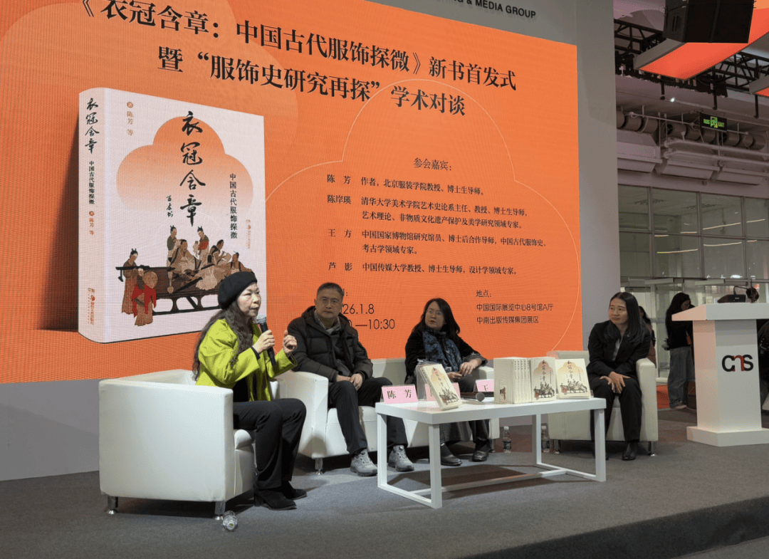 1月8日,湖南美术出版社举办《衣冠含章:中国古代服饰探微》新书首发式暨“服饰史研究再探”学术对谈活动。该书由北京服装学院陈芳教授领衔著述,涉及从名物考据、复原至塑造“华夏衣冠”的独特观念的思想史、文化史、制度史研究等方面的内容,为读者提供了从服饰史来管窥中国诸多重要历史节点的视角。