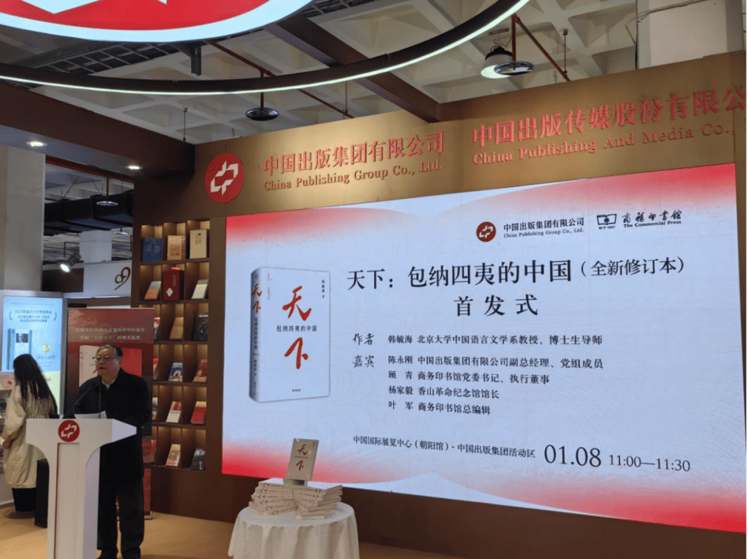 1月8日,商务印书馆重磅力作《天下:包纳四夷的中国》(全新修订本)首发式在北京图书订货会现场举行。中国出版集团有限公司副总经理、党组成员陈永刚,商务印书馆党委书记、执行董事顾青,香山革命纪念馆馆长杨家毅等嘉宾应邀出席,商务印书馆总编辑叶军主持首发式。