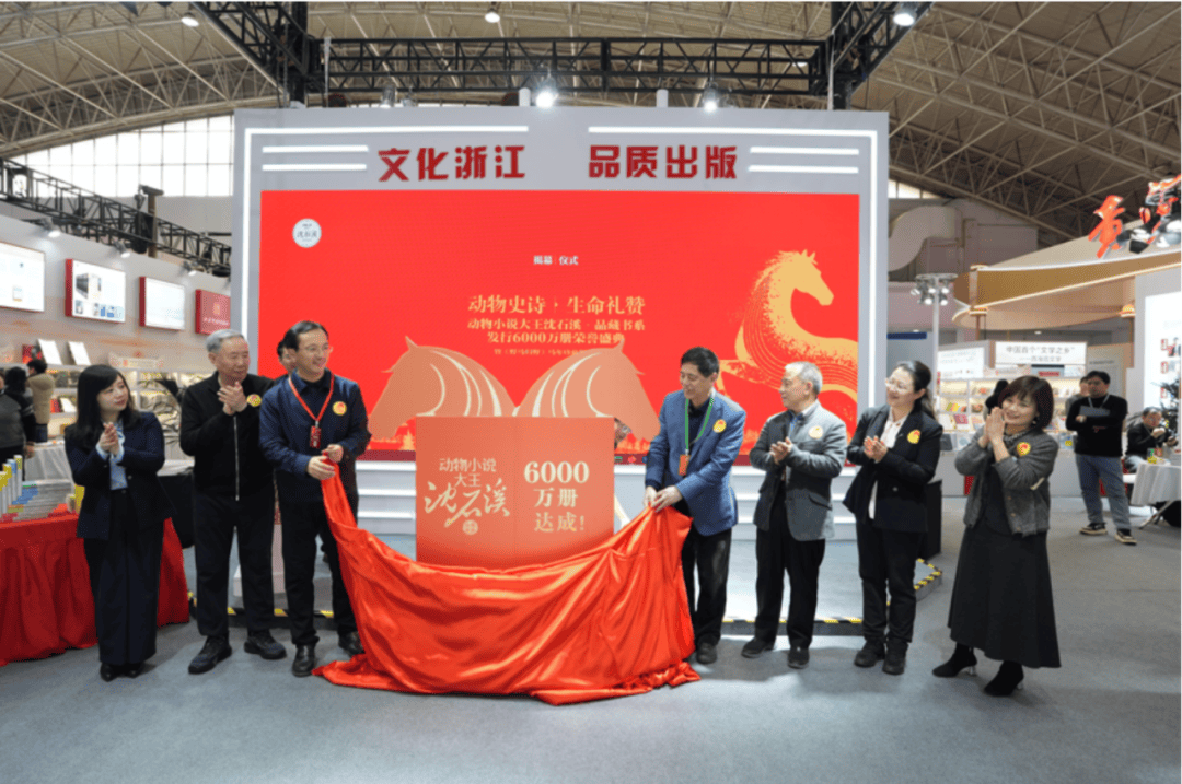 到场嘉宾一起为品藏书系6000万册达成的荣耀时刻揭幕。在马年新年即将到来之际,沈石溪携手浙少社,提前准备了一份特别的新春贺礼——动物小说《野马归野》马年珍藏版。伴随着别出心裁的揭幕设计,《野马归野》马年珍藏版正式亮相。
