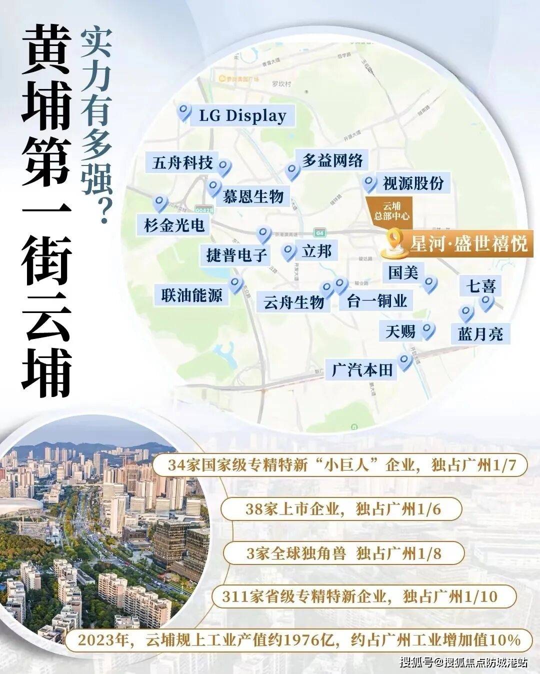 首先,科学城位于广州东进中心黄金核心,承接千亿产业及百万高新人才红利,定位为“中国智造中心”,有着广州硅谷之称。官方数据显示,科学城吸纳了超15万家企业落户,占据了黄埔80%以上的上市公司、60%以上的科技公司、90%的世界500强企业。企业产业云集于此,也汇聚了众多高素质人才。近十年间,科学城常住人口55.1万人,占黄埔区总人口约40%,且以科技人才为主。2023年,云埔街道421家年营收2000万以上工业企业实现总产值约1976亿元,占广州市GDP总值近10%,每㎡的产值是广州的10倍。这一连串惊人的数据,充分证明了云埔板块强大的经济实力和产业活力。