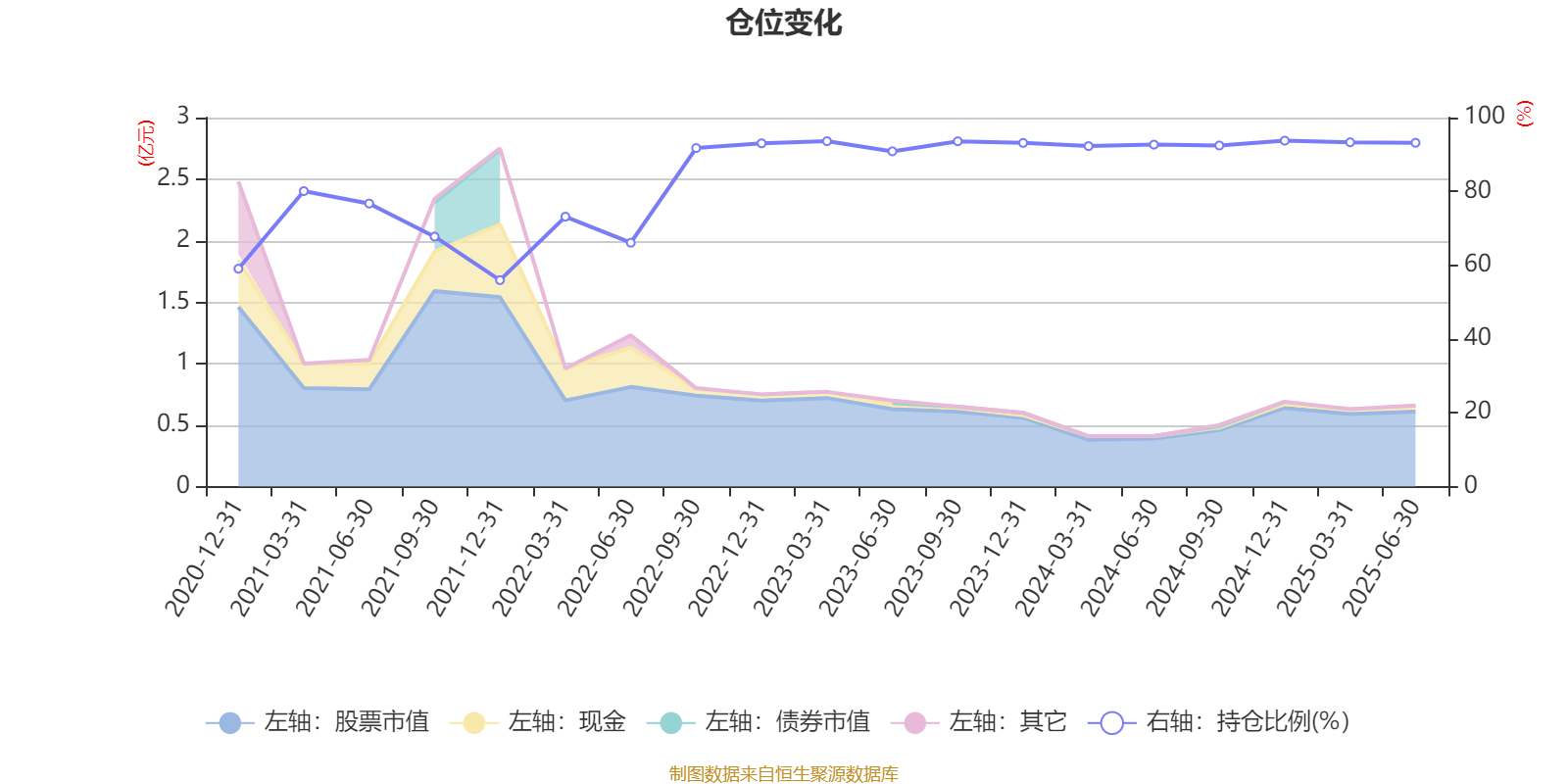 据定期报告数据统计,近三年平均股票仓位为92.8%,同类平均为83.27%。2024年末基金达到93.75%的最高仓位,2021年末最低,为55.95%。