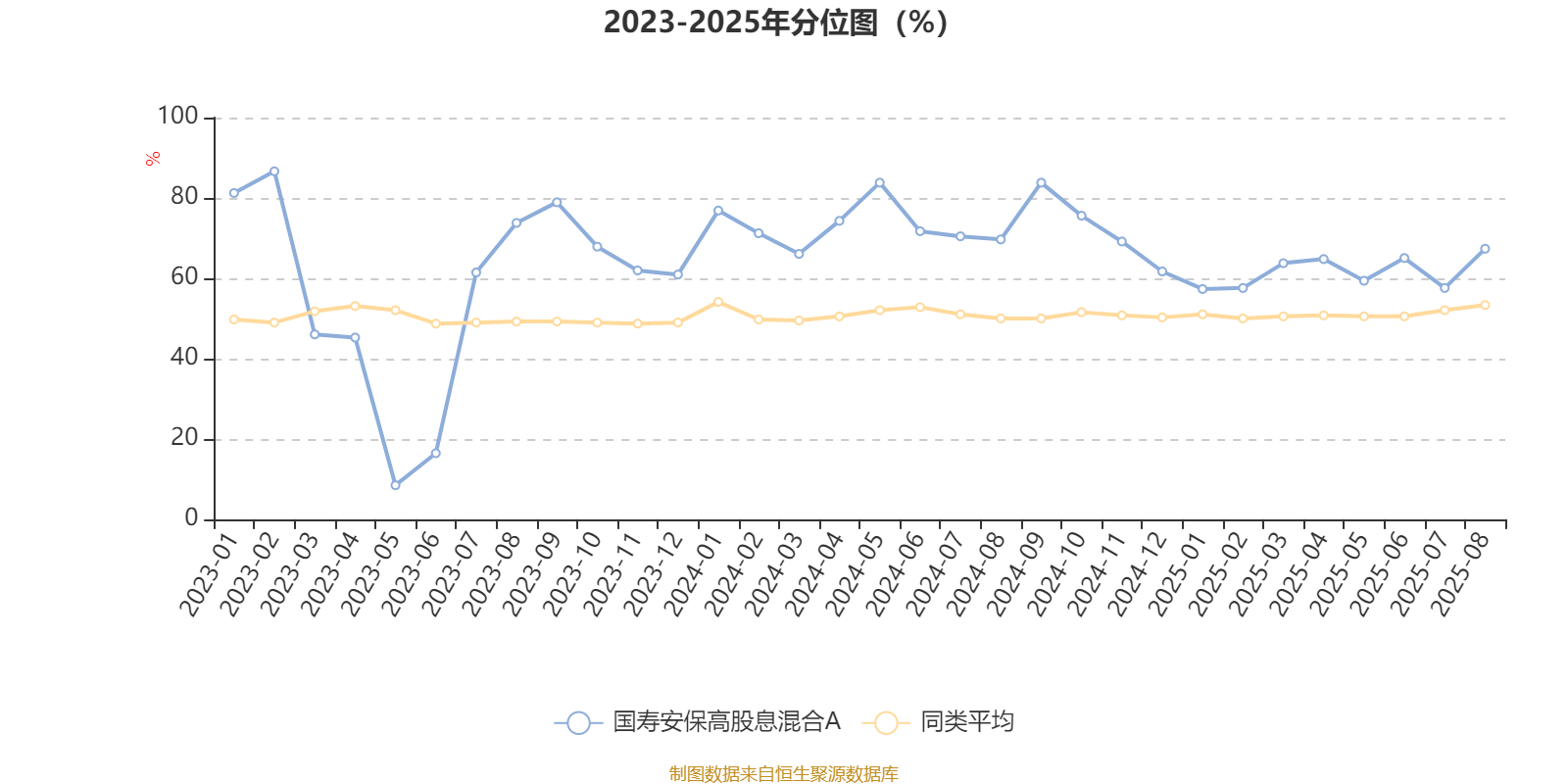 通过所选区间该基金净值增长率分位图,可以观察该基金与同类基金业绩比较情况。图为坐标原点到区间内某时点的净值增长率在同类基金中的分位数。