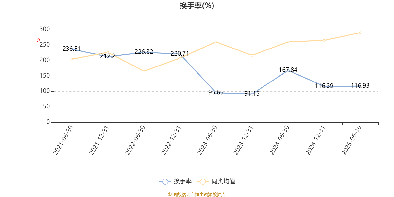 截至2025年6月30日,基金最近半年换手率约116.93%,持续2年低于同类均值。