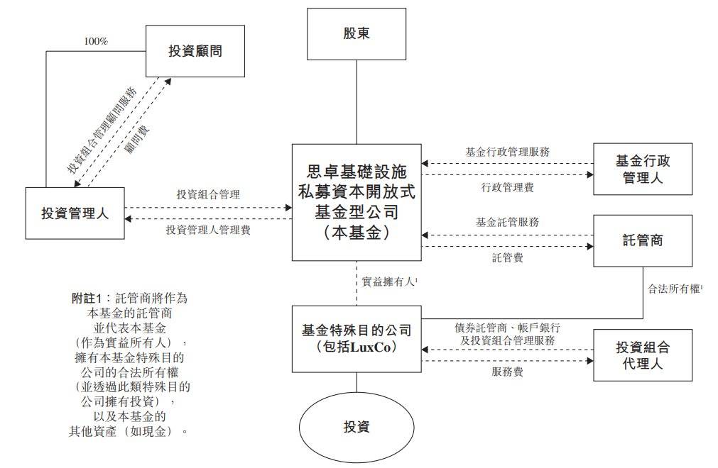招股书显示,思卓基础设施私募资本开放式基金型公司为注册成立为香港公众开放式基金型公司的封闭式基金,是根据香港法例以公司形式设立的具有有限责任的投资基金。