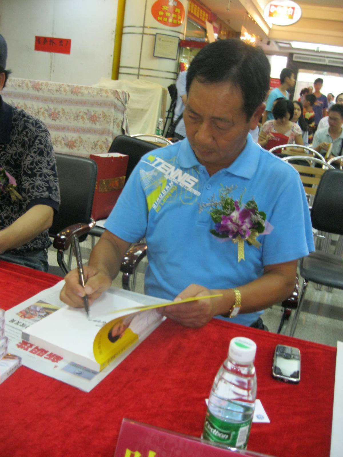签售仪式现场,《中国砖王叶德林》作者黄康俊、该书传主叶德林、经济管理出版社社长张世贤等并排而坐,被众多书店顾客和媒体围堵。短短一个多小时,《中国砖王叶德林》就签售了数百本。