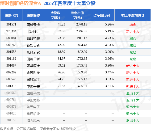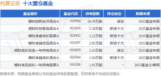 根据2025基金年报公募基金重仓股数据,重仓该股的公募基金共6家,其中持有数量最多的公募基金为博时基金的博时创新经济混合A。博时创新经济混合A目前规模为3.7亿元,最新净值1.4941(3月19日),较上一交易日下跌1.64%,近一年上涨41.7%。该公募基金现任基金经理为田俊维。田俊维在任的基金产品包括:博时卓睿成长股票A,管理时间为2025年6月20日至今,期间收益率为10.86%;博时卓越优选混合A,管理时间为2025年6月27日至今,期间收益率为7.91%。