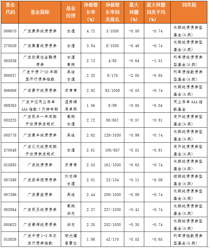 在低利率的市场环境下,投资者的目光再度聚焦于那些能够穿越周期、在不同分化行情中持续展现业绩韧性的基金。作为深耕固定收益业务近二十载的综合性基金公司,广发基金固收团队坚持稳中求进的投资理念,旗下多只产品取得了绩优的长期业绩。